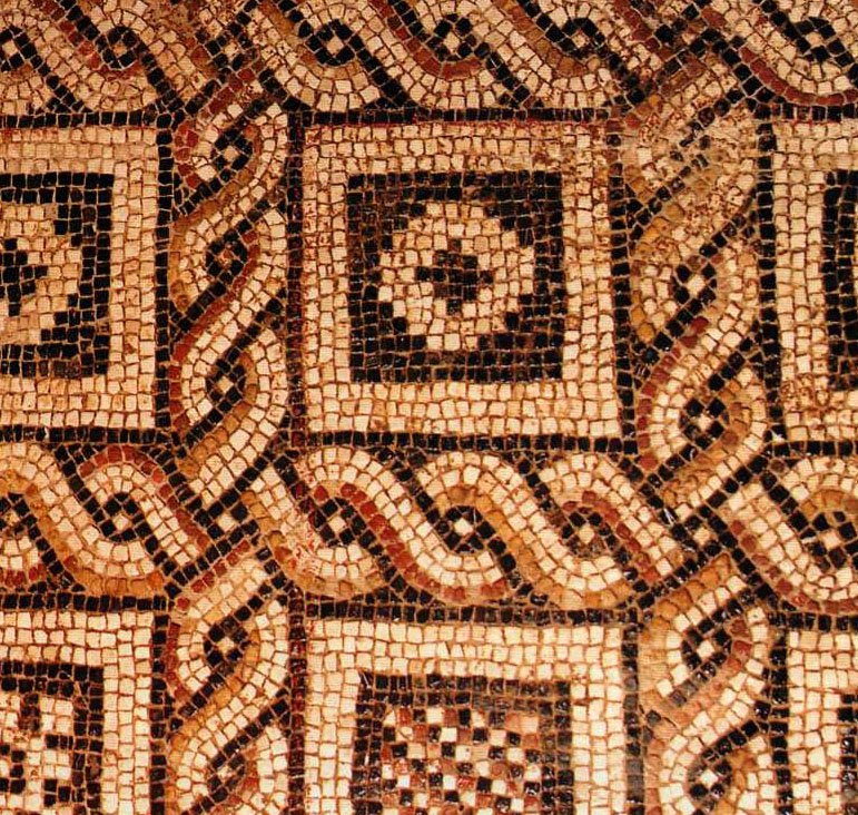Los mosaicos romanos se basan en los tapices y especialmente en la pintura. Tiene la ventaja con relación a la pintura de su gran durabilidad. Sin embargo los asuntos representados en los mosaicos son los mismos que pueden encontrarse en la pintura, aunque obligadamente su perspectiva es más falsa y forzada.